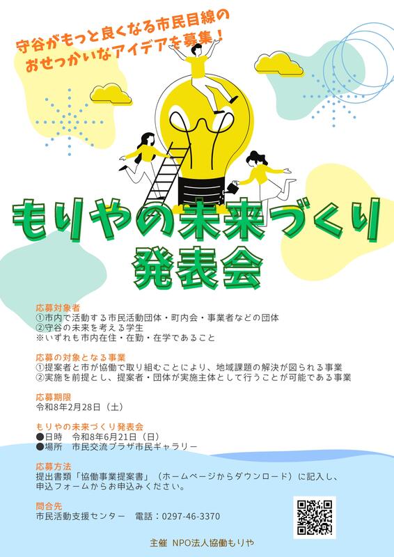 守谷がもっと良くなる市民目線の おせっかいなアイデアを募集! 投稿日時 : 12/11 システム管理者 カテゴリ: みんなで考えようもりやの未来守谷がもっと良くなるような市民目線のおせっかいなアイデアを募集しています! >提出書類のダウンロード、詳しい募集内容はこちらをご覧ください